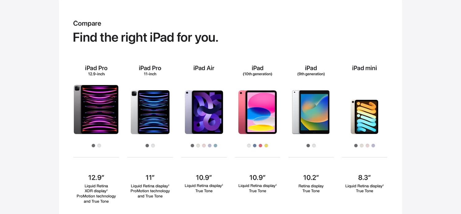 สายการผลิตแท็บเล็ตของ Apple กลายเป็นสิ่งที่น่าสนใจและซับซ้อนมากขึ้นในปีนี้ เมื่อเร็ว ๆ นี้ Apple ได้เปิดตัว iPad รุ่นที่ 10 และ iPad Pro รุ่นที่มีแรงขับเคลื่อนด้วยชิป M2 แล้ว ทาง Apple ตอนนี้มีการขายแท็บเล็ตสามรุ่นในช่วงขนาด 11 นิ้วที่มีการออกแบบที่คล้ายคลึงกันแต่มีความแตกต่างในเรื่องของส่วนประกอบภายในและการสนับสนุนอุปกรณ์เสริม แท็บเล็ตรุ่น 10.2 นิ้วของปี 2021 ยังคงวางขายอยู่ แต่มีลักษณะเป้าหมายตลาดที่แตกต่างจากตัวเลือกรุ่นใหม่ที่มีชื่อเดียวกัน ซึ่งมีราคาสูงกว่า และ iPad mini ยังคงเป็นตัวเลือกที่คงไว้เหมือนเดิม