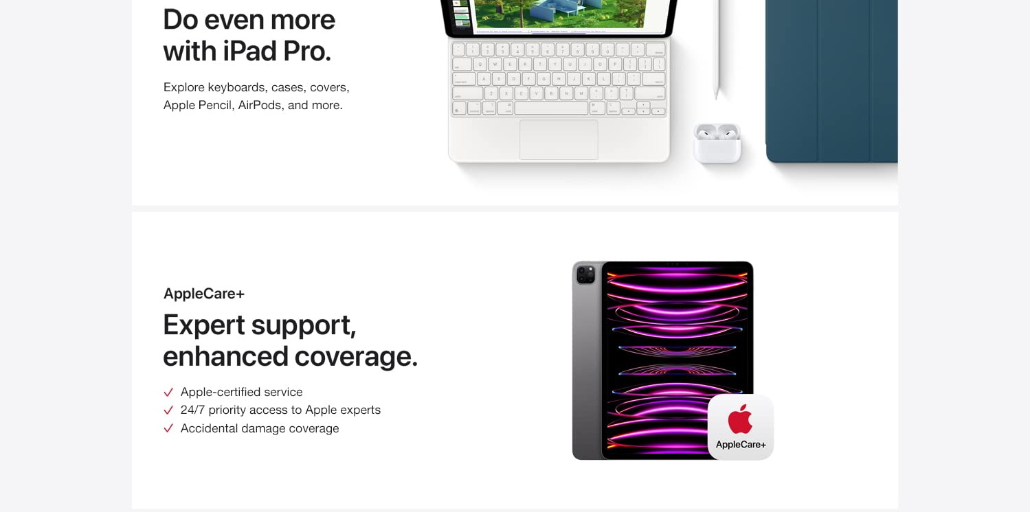 เราให้ iPad Pro รุ่นล่าสุดคะแนนรีวิวได้ถึง 87 คะแนนเมื่อเดือนพฤศจิกายน หน้าจอที่นี่สามารถเปิดแสงสว่างกว่า Air ได้ และมีอัตราการรีเฟรช 120 Hz (Air จำกัดที่ 60 Hz) หน้าจอ Liquid Retina ของ iPad Pro ขนาด 12.9 นิ้วเป็นการอัปเกรดที่ดีกว่ารุ่น 11 นิ้ว เนื่องจากมีการใช้งานแบบ mini-LED backlighting ซึ่งสามารถให้ความสว่างสูงสุดมากขึ้น ความคมชัดเพิ่มขึ้น และภาพที่สมจริงมากขึ้นโดยรวม นอกจากนี้ Pro ใช้ชิป M2 ใหม่ของ Apple ที่ไม่ได้เป็นการอัปเกรดใหญ่เมื่อเทียบกับ M1 ในการใช้งานจริง แต่มันมีประสิทธิภาพเพิ่มขึ้นสำหรับงานในอนาคต iPad Pro มีกล้องหลัง 12MP เช่นเดียวกับ Air แต่เพิ่มเลนส์อัลตร้าไวด์ 10MP และแฟลช LED (รวมถึงสแกนเนอร์ LIDAR สำหรับแอป AR) กล้องด้านหน้า 12MP ยังสามารถถ่ายภาพในโหมดพอร์ตเทรตได้