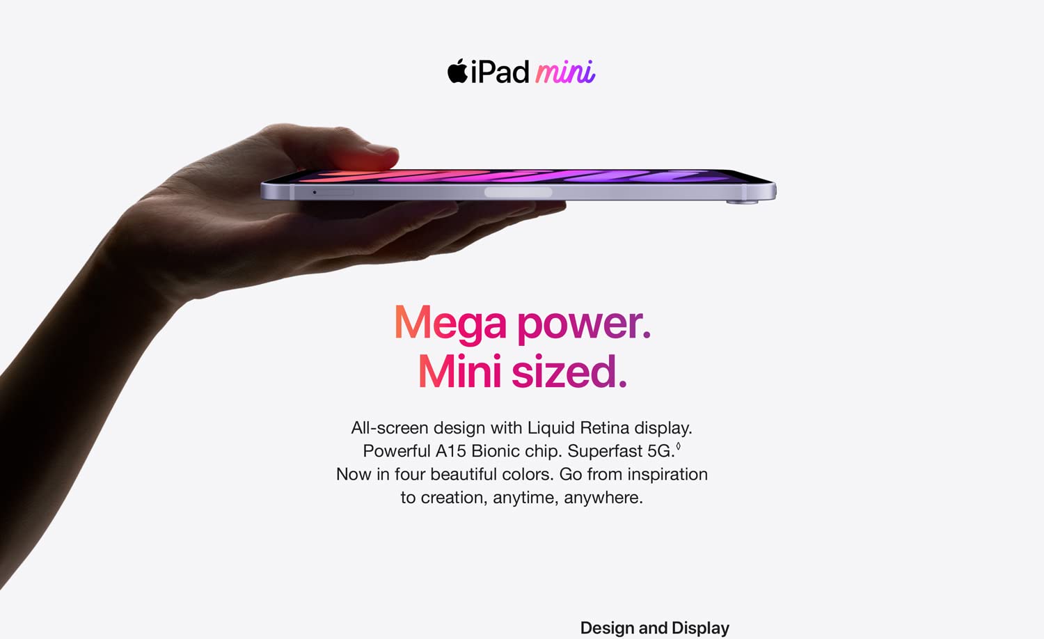 iPad mini เป็นตัวอย่างที่แท้จริงของ iPad ขนาดเล็ก มันเป็น iPad ที่สั้นที่สุด (7.69x5.3x0.25 นิ้ว) และเบาที่สุด (0.65 ปอนด์สำหรับรุ่น WiFi) ในทุกๆ รุ่นปัจจุบัน มีหน้าจอขนาด 8.3 นิ้วที่ใช้งานได้สะดวกกับมือเดียว